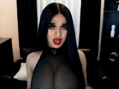 Sexy Shemale With Big Tits Jerking Her Huge Cock Off