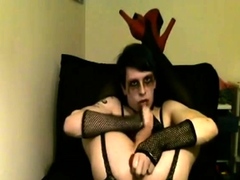 Wanking crossdresser in pantyhose with load of cum on my leg