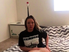 Amateur busty brunette masturbates and does hand job